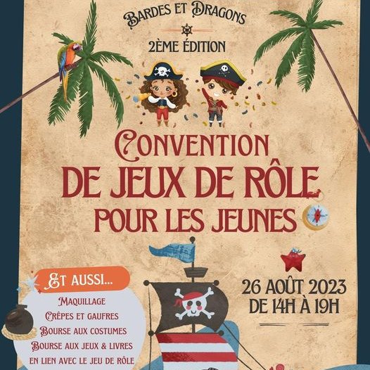 16 juillet 2023, par YannickSamedi 26 août nos amis Bardes & Dragons organise la 2ème édition de leur convention de jeux de rôle pour les jeunes. Au programme : une vingtaine de tables de JDR et des animations.